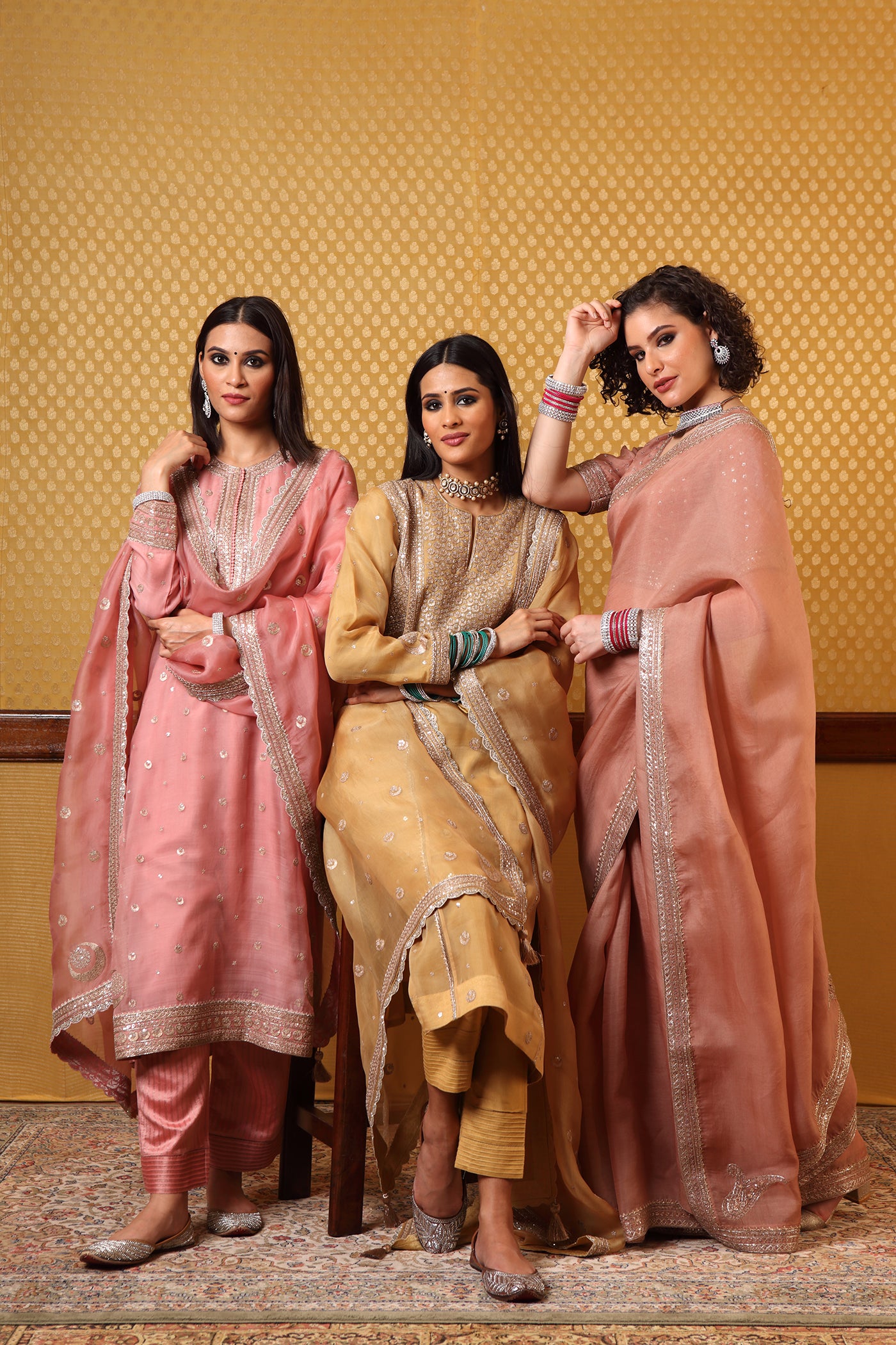 Handembroidered Peach Kurtapure Silkorganza Kurtasharara Set
