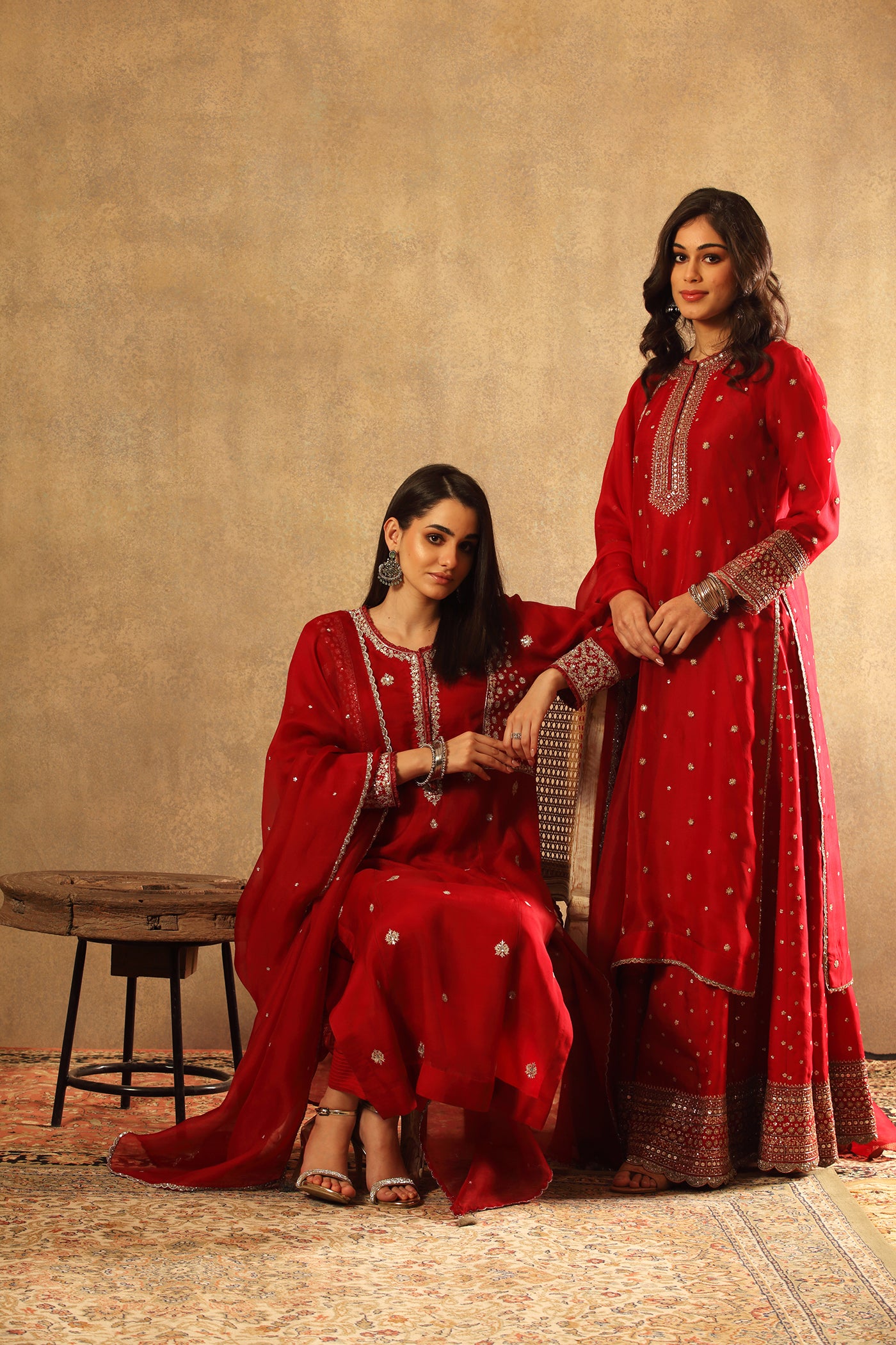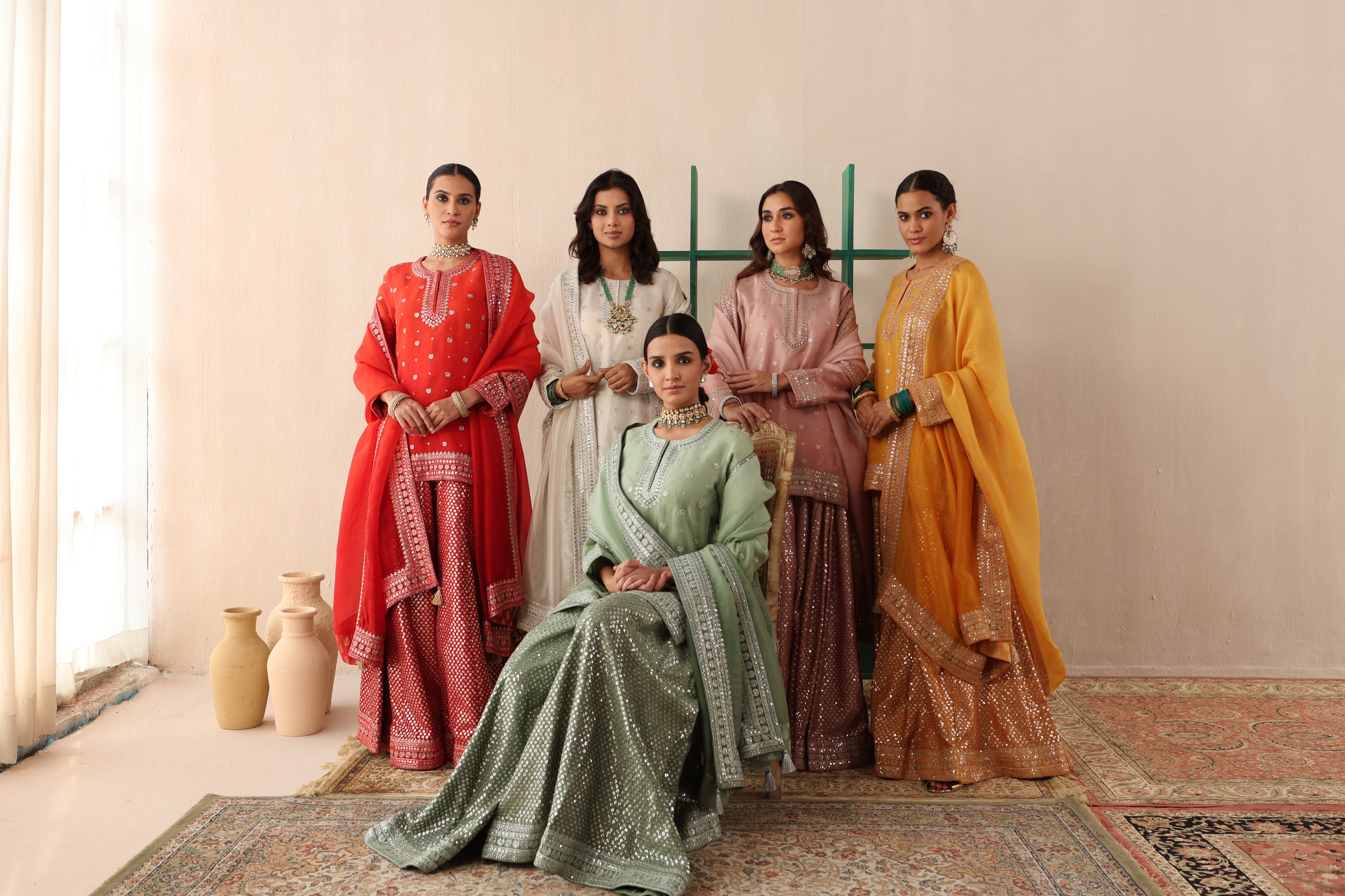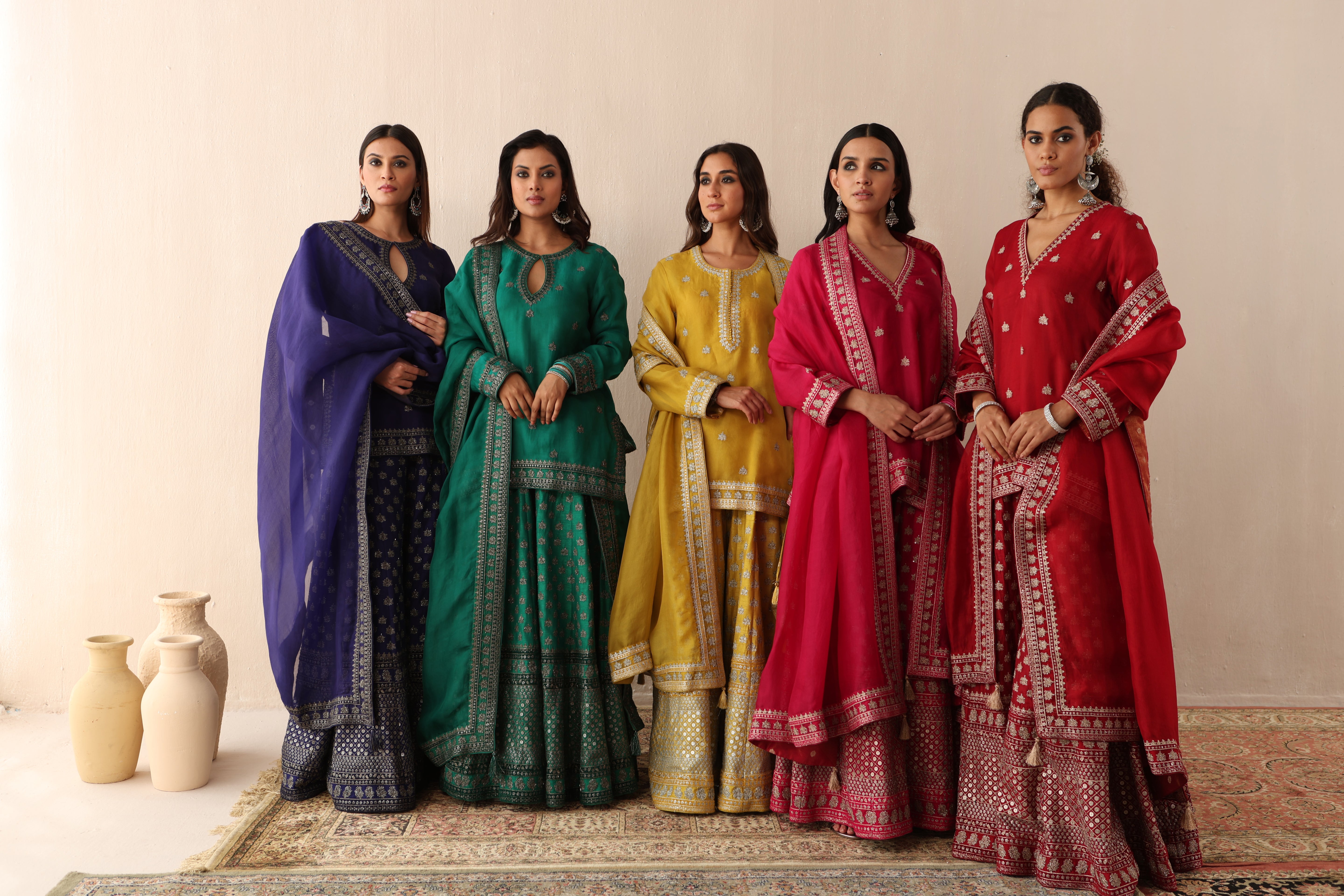 Hand Embroidered Honey Suckle Short Kurta Sharara Set