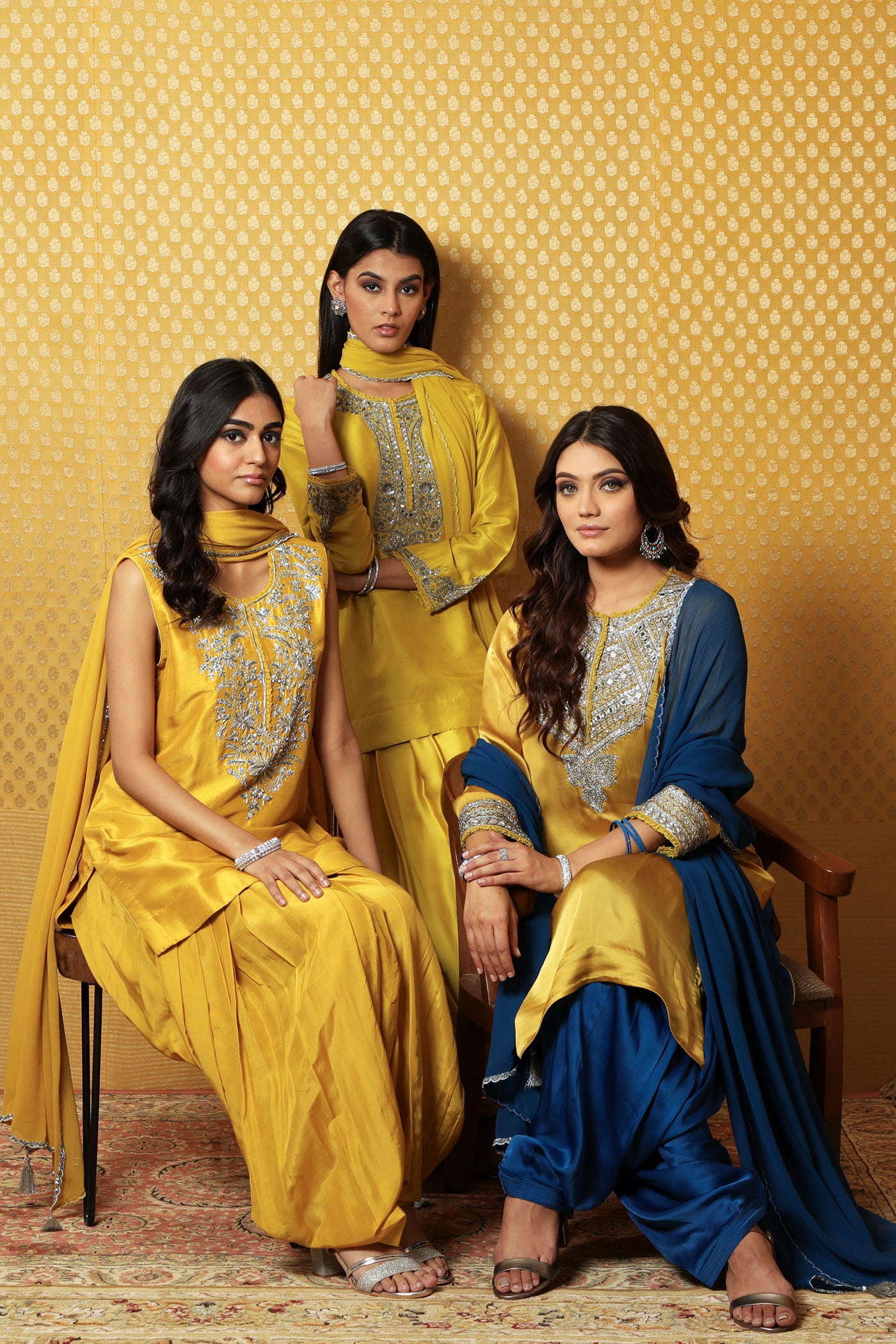Hand Embroidered Musturd Yellow Kurta Plazzo Set