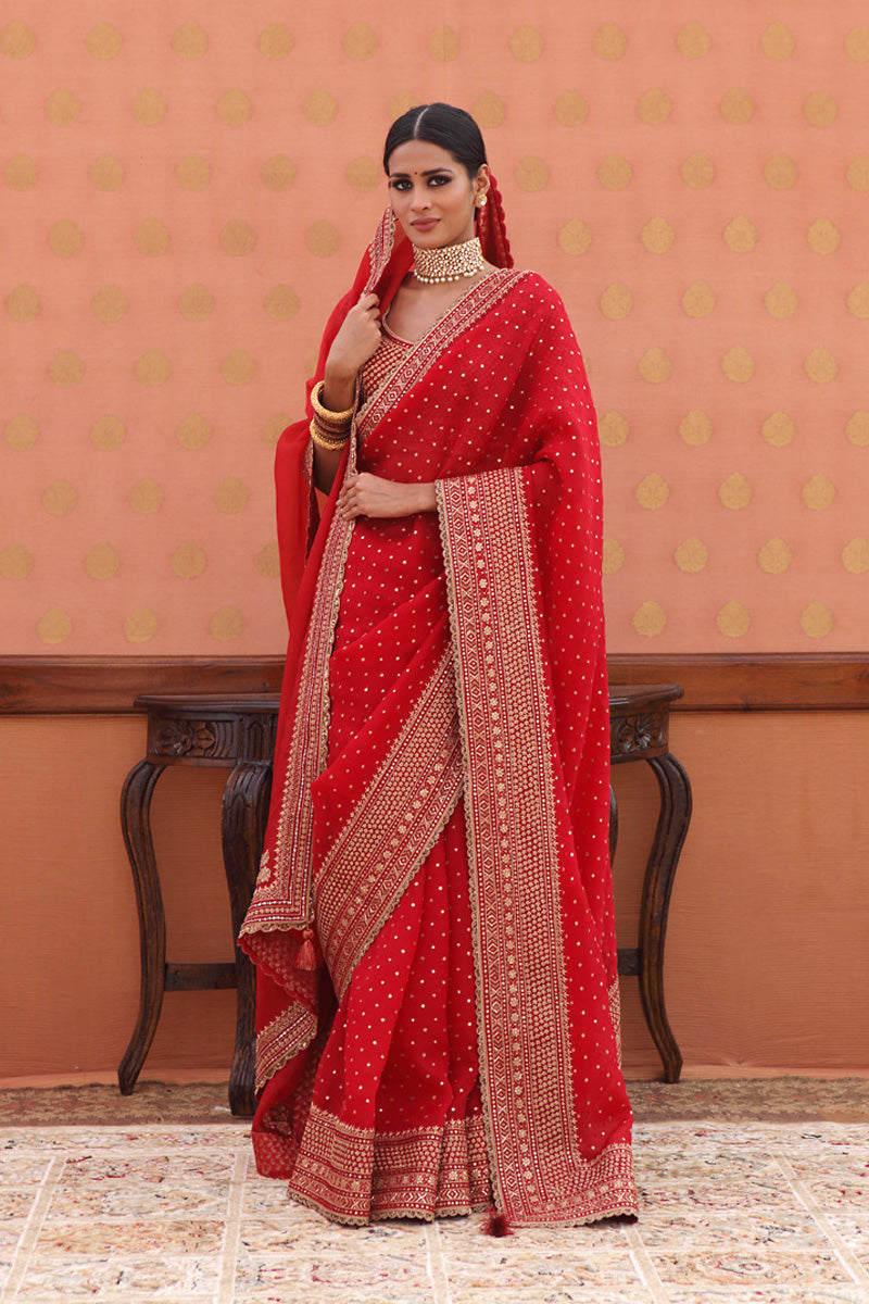 Handembroidered Flamingopink Pure Silkorganza Sareeblouse Set