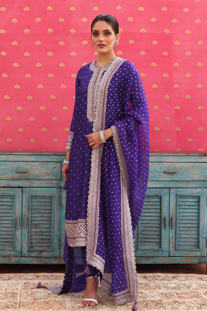 Handembroidered Ferngreen Pure Katansilk Kurtaplazzo Set