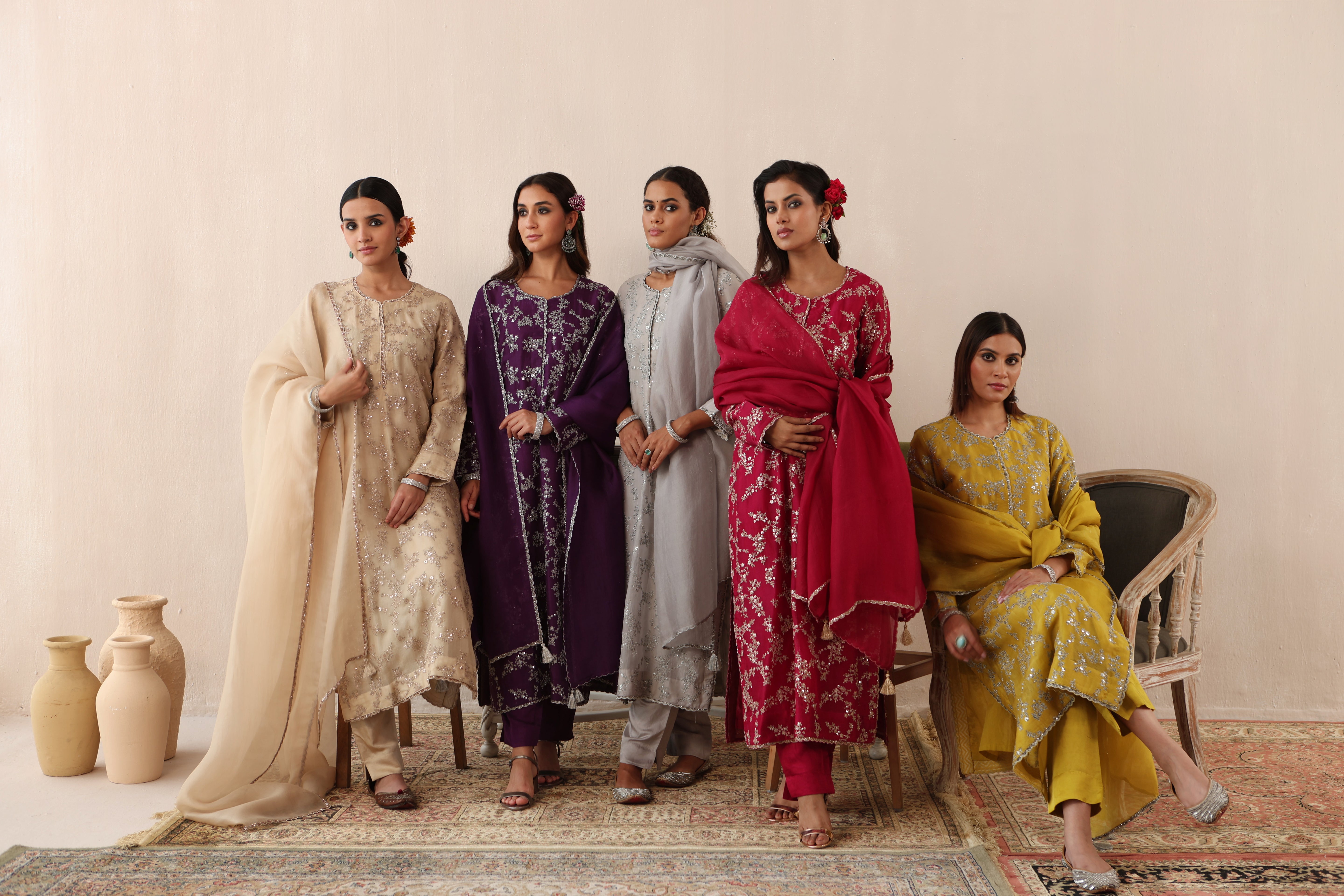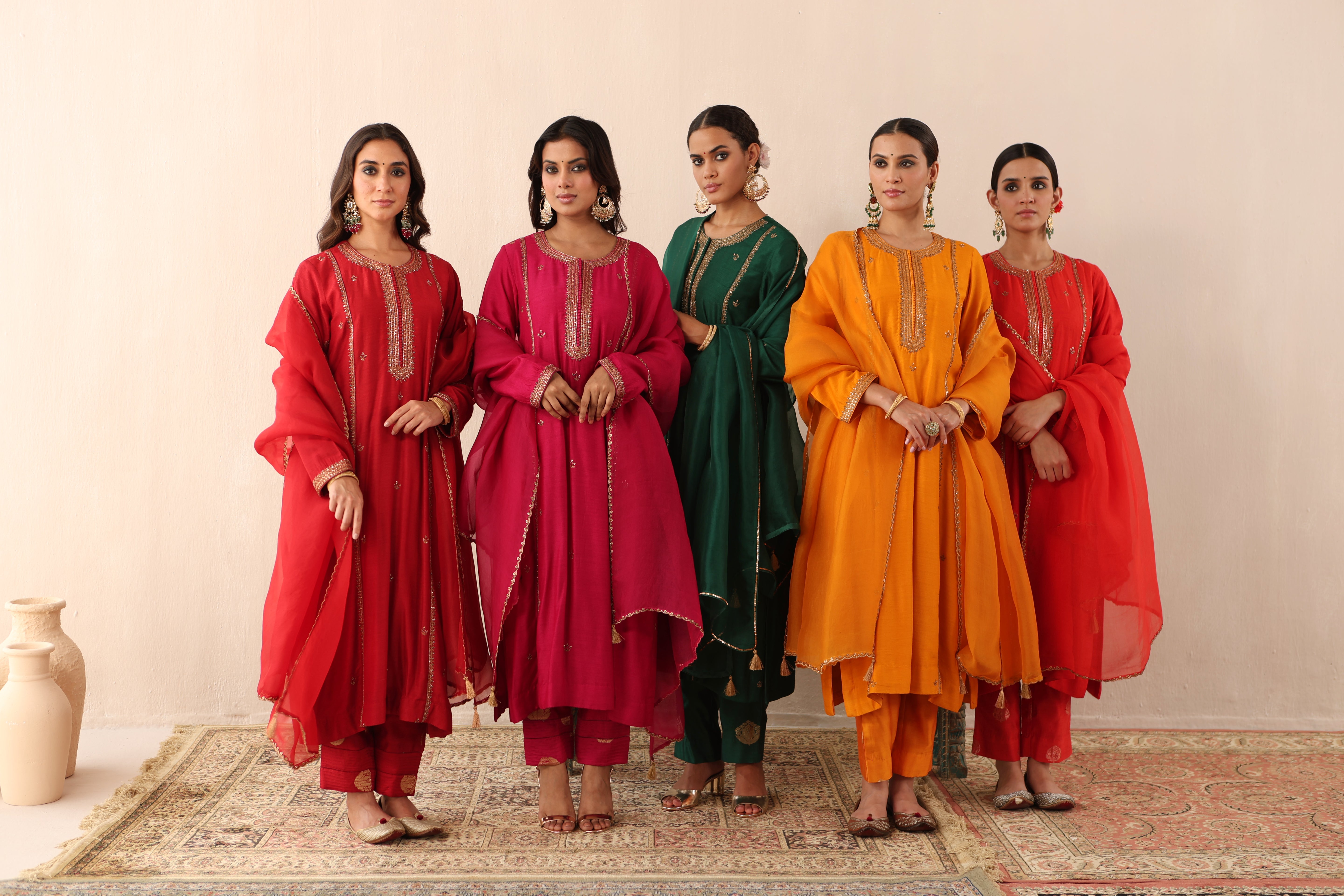 Hand Enbroiidered Burnt Peach Kurta Salwar Set