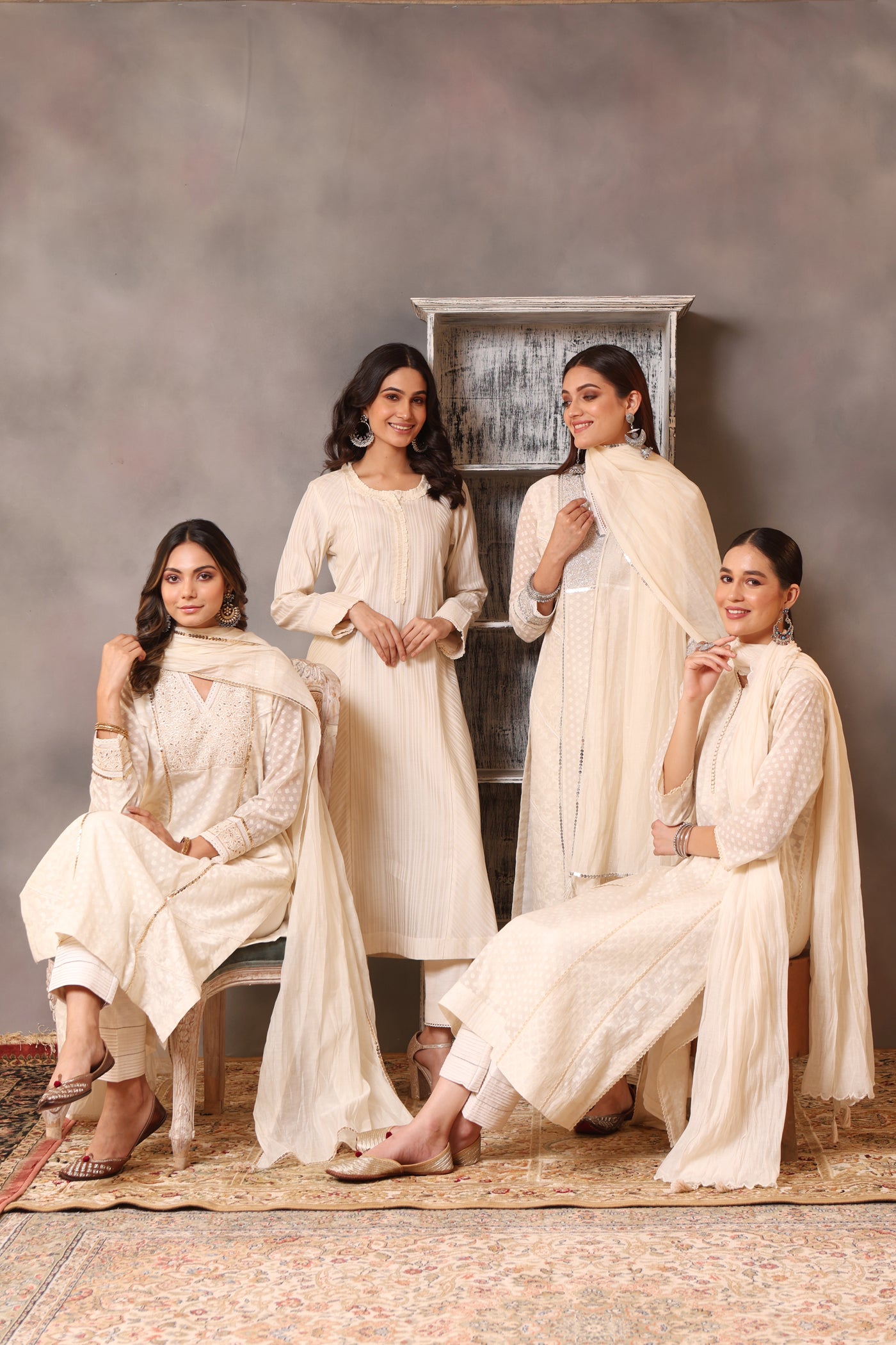 The products are quintessentially Indian in form and spirit; they are traditional and timeless with a contemporary appeal. The idea behind Trisvaraa was to present to the world a different interpretation of our heritage weaves and intricate and delicate hand-embroideries of our master weavers and artisans respectively. In Aparajita’s words: “Trisvaraa celebrates Indian craftsmanship in its truest form”.